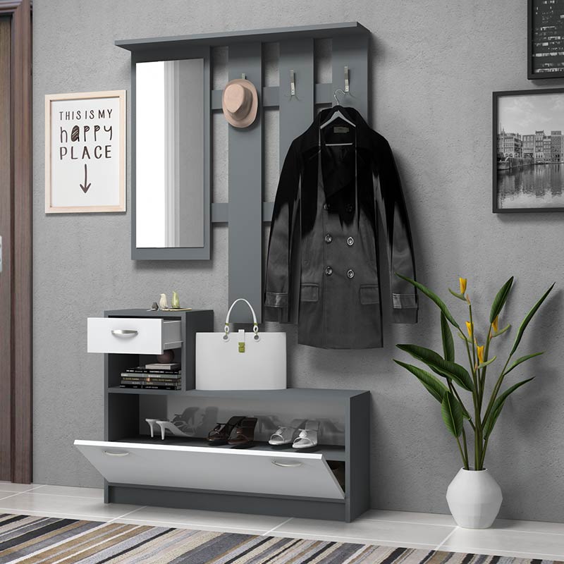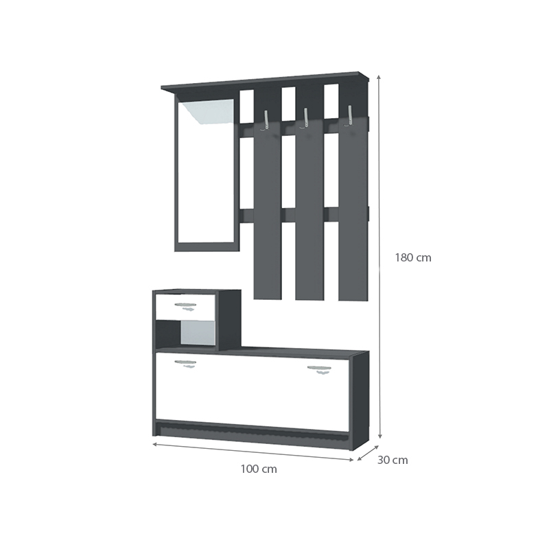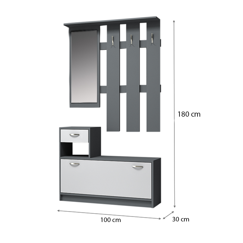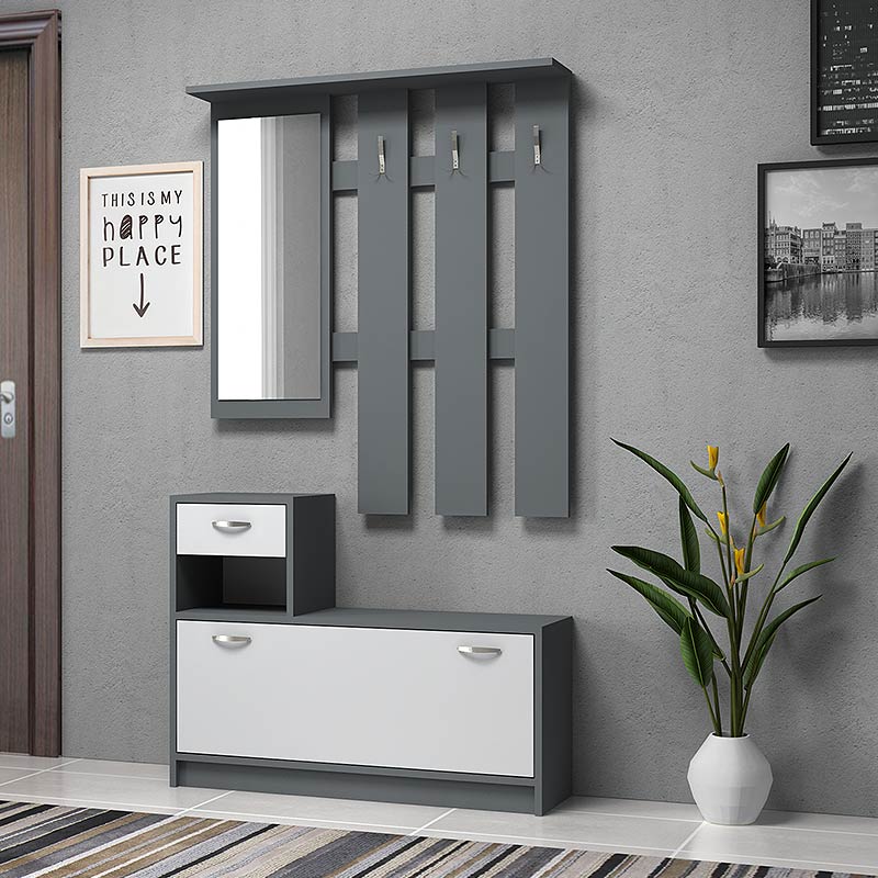 Έπιπλο εισόδου μελαμίνης Raynold Megapap χρώμα ανθρακί – λευκό 100x30x180εκ.