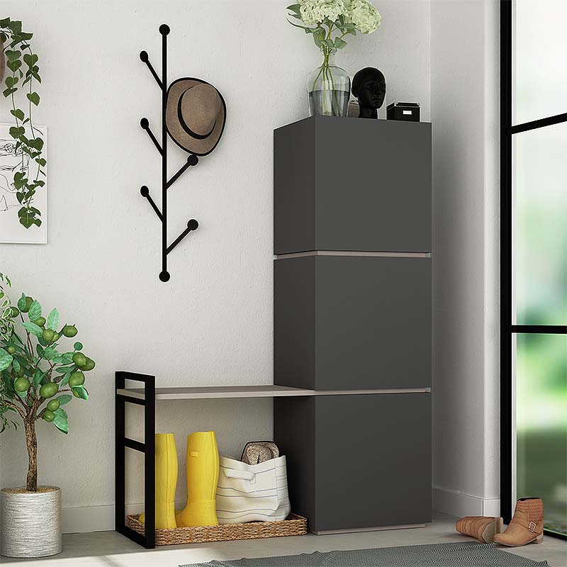 Έπιπλο εισόδου με κρεμάστρα Mello Megapap από μελαμίνη χρώμα ανθρακί 109x39x149εκ.