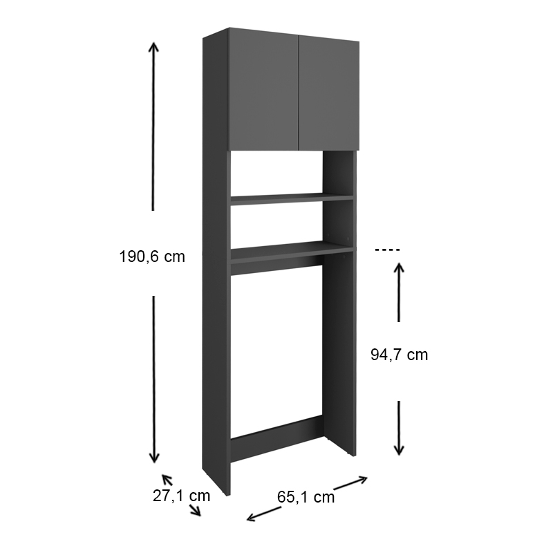 Έπιπλο πλυντηρίου Ramsey Megapap από μελαμίνη χρώμα ανθρακί 65x27x190,6εκ.