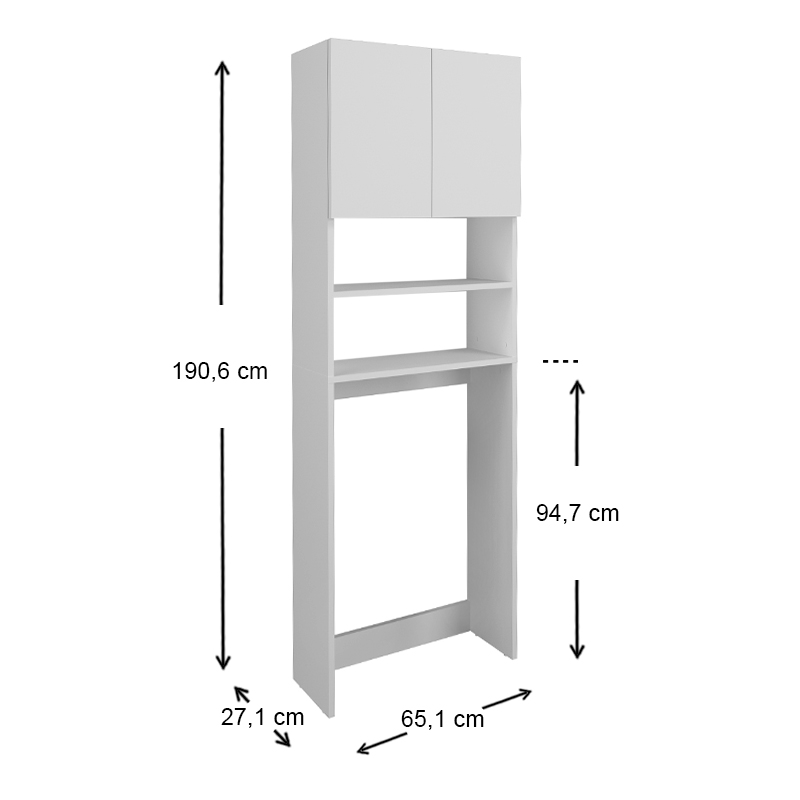 Έπιπλο πλυντηρίου Ramsey Megapap από μελαμίνη χρώμα λευκό 65x27x190,6εκ.