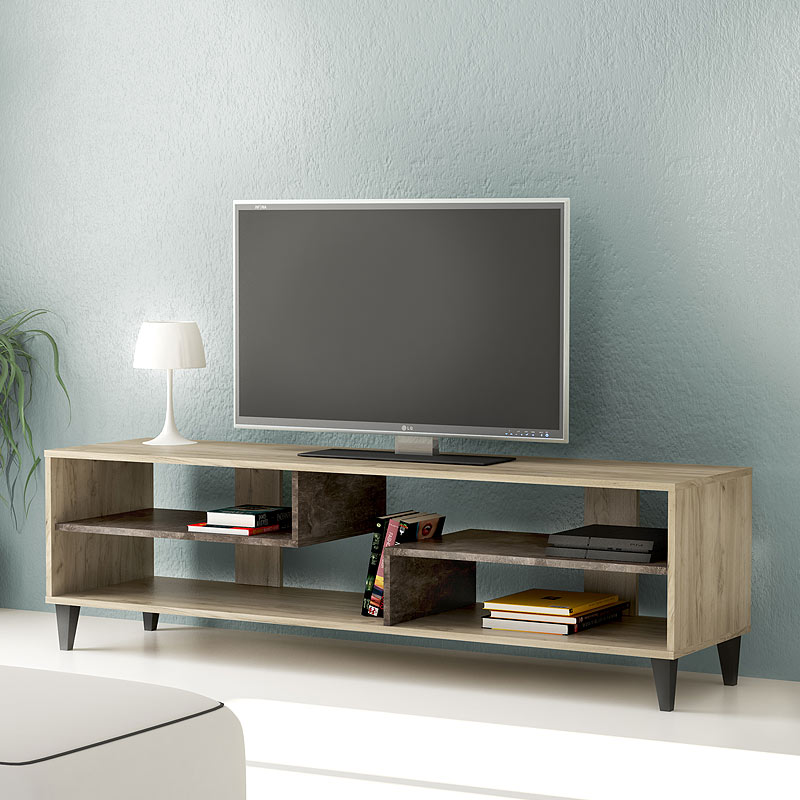 Έπιπλο τηλεόρασης Anders Megapap από μελαμίνη χρώμα γκρι oak – dark atelier 150x40x46εκ.