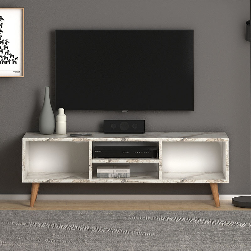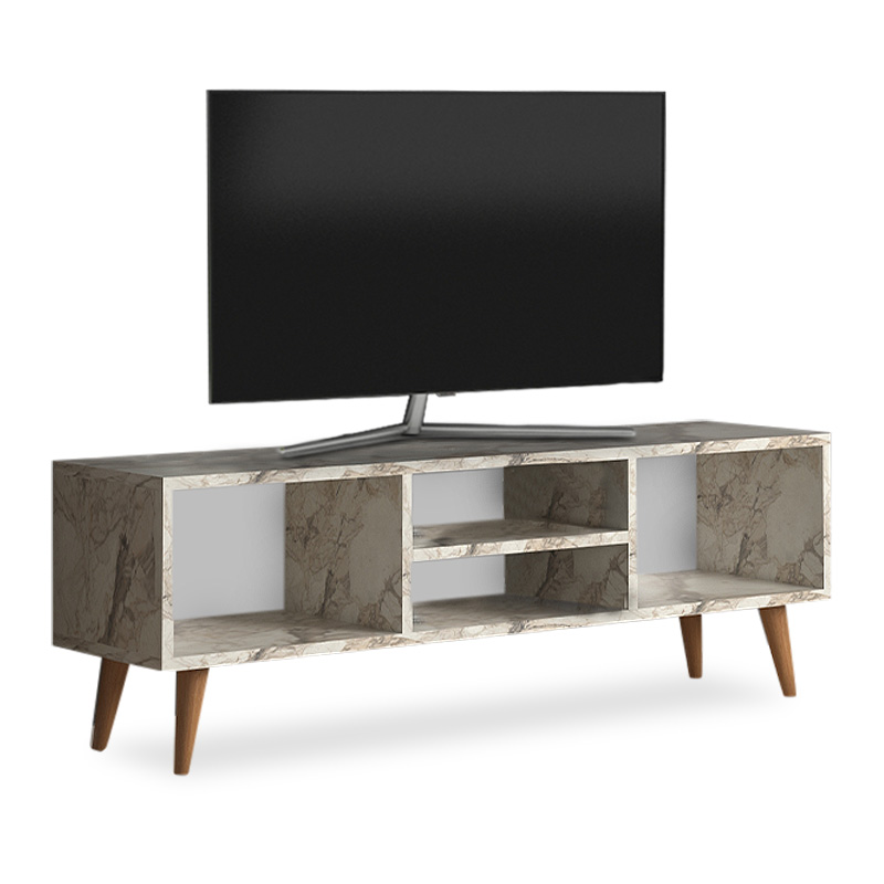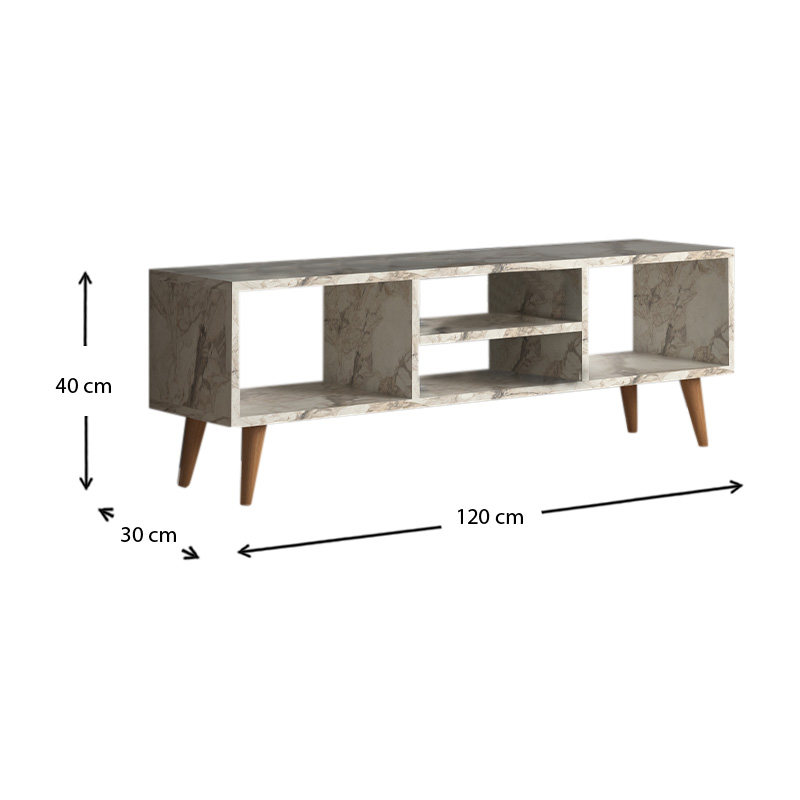 Έπιπλο τηλεόρασης Loren Megapap από μελαμίνη χρώμα λευκό εφέ μαρμάρου 120x30x40εκ.