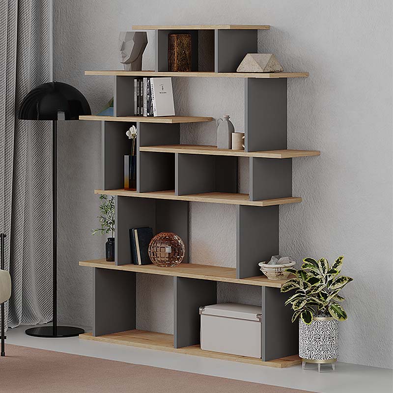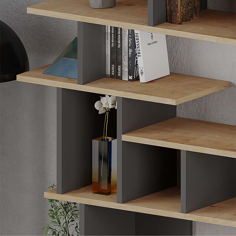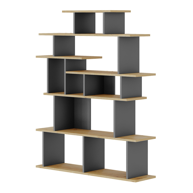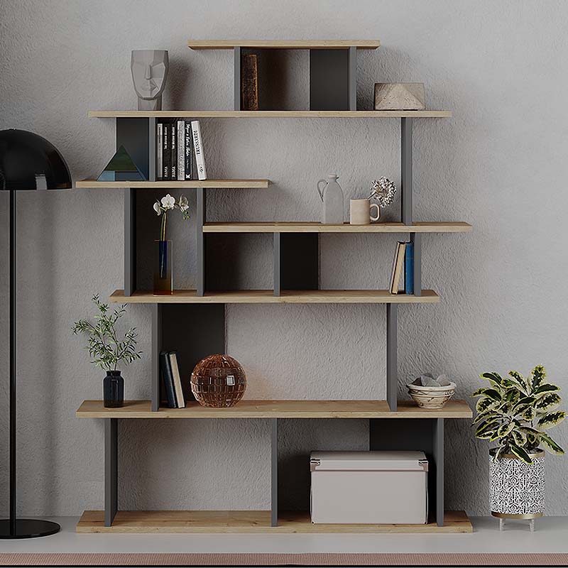 Βιβλιοθήκη μελαμίνης Apollon Megapap χρώμα φυσικό οξιάς – ανθρακί 120×29,2×149εκ.