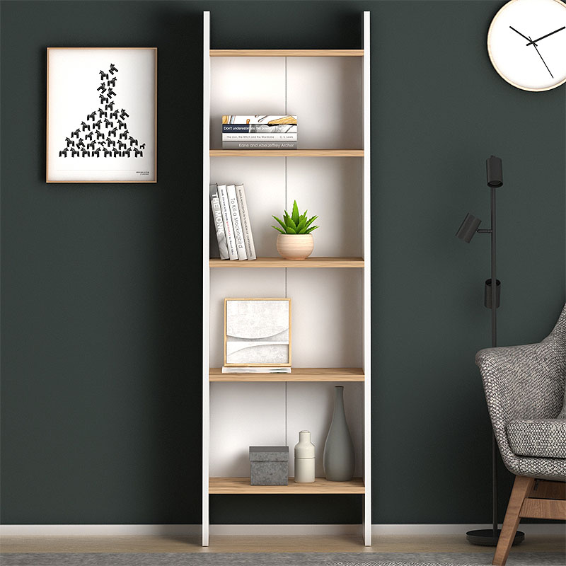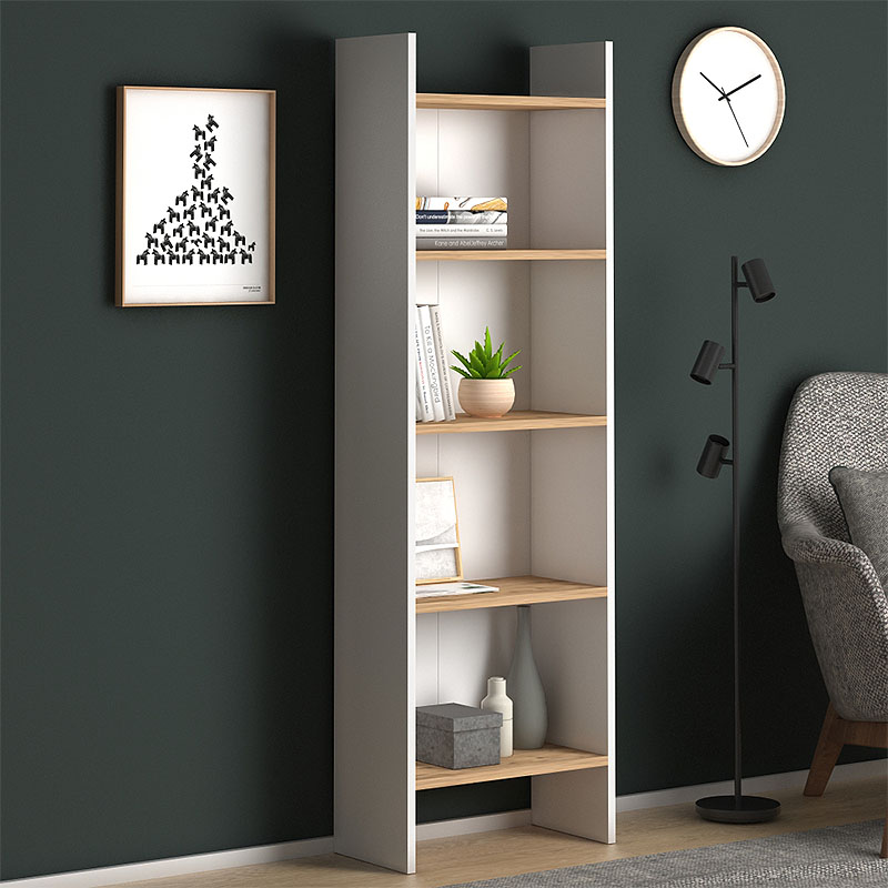 Βιβλιοθήκη μελαμίνης Flora Megapap χρώμα white pine 52x25x158εκ.