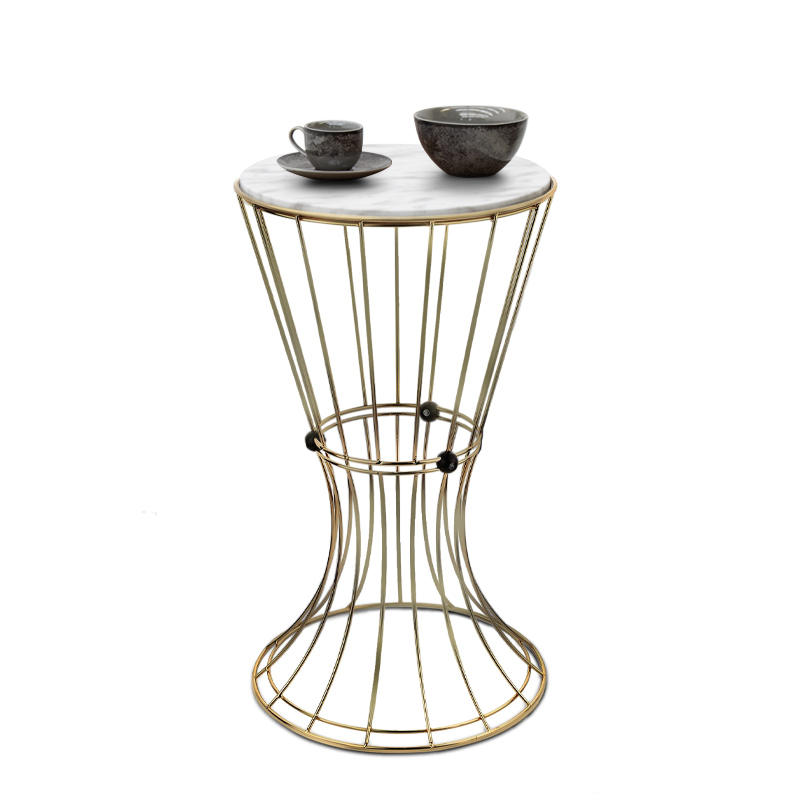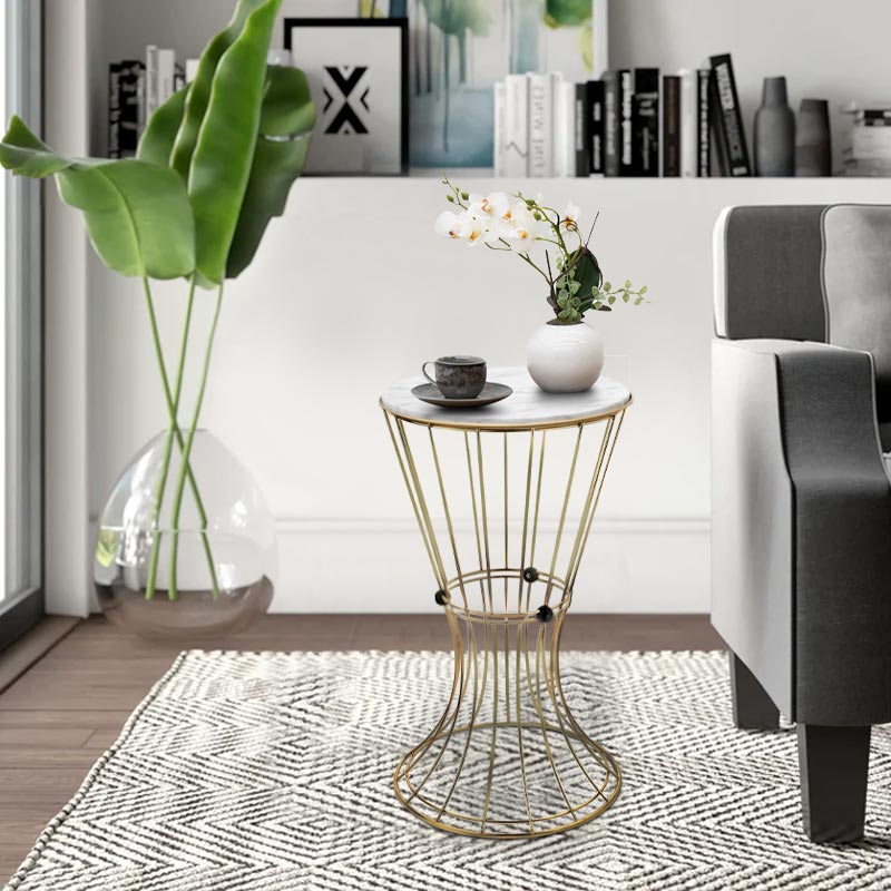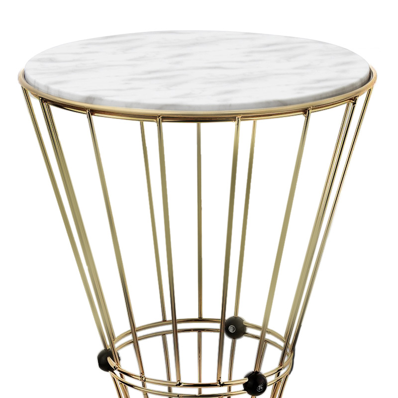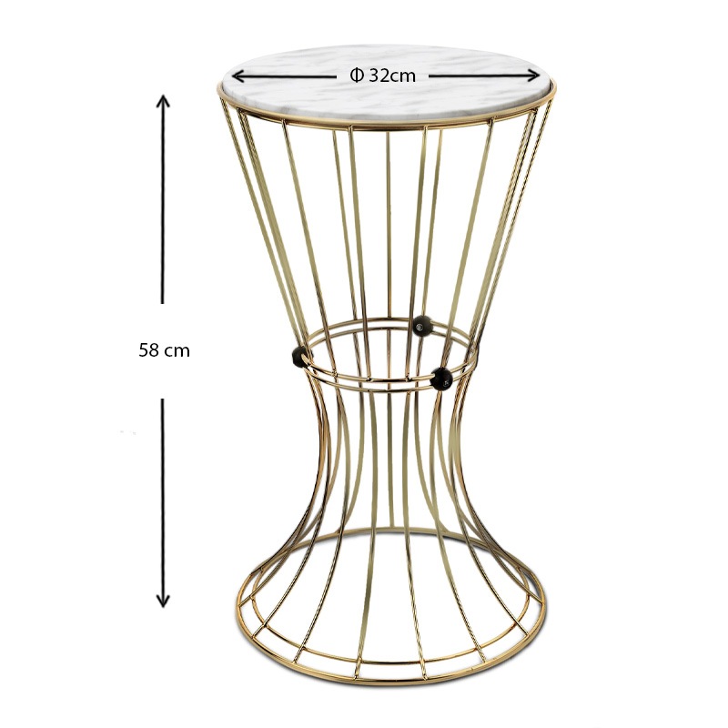 Βοηθητικό τραπεζάκι Girene Megapap μεταλλικό – Mdf χρώμα χρυσό – λευκό εφέ μαρμάρου 32x32x58εκ.