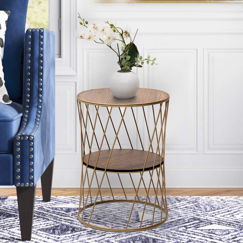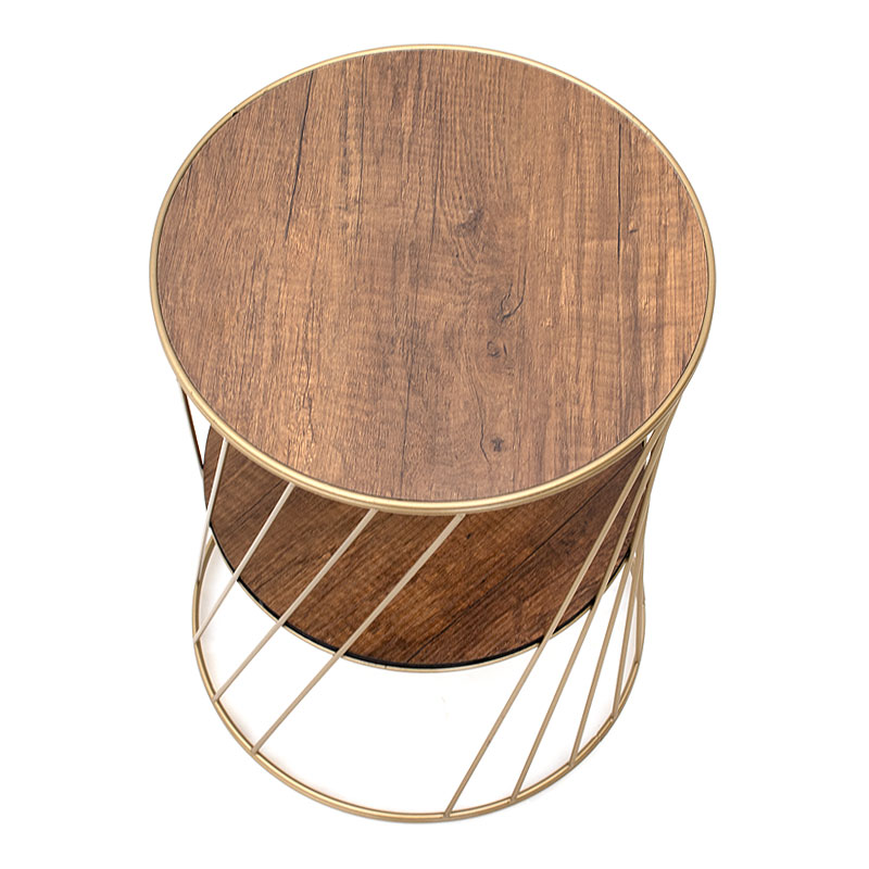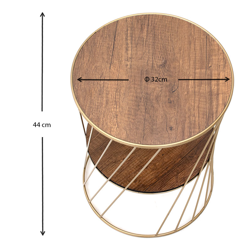 Βοηθητικό τραπεζάκι Jaspin Megapap μεταλλικό – Mdf χρώμα χρυσό – καρυδί 32x32x44εκ.