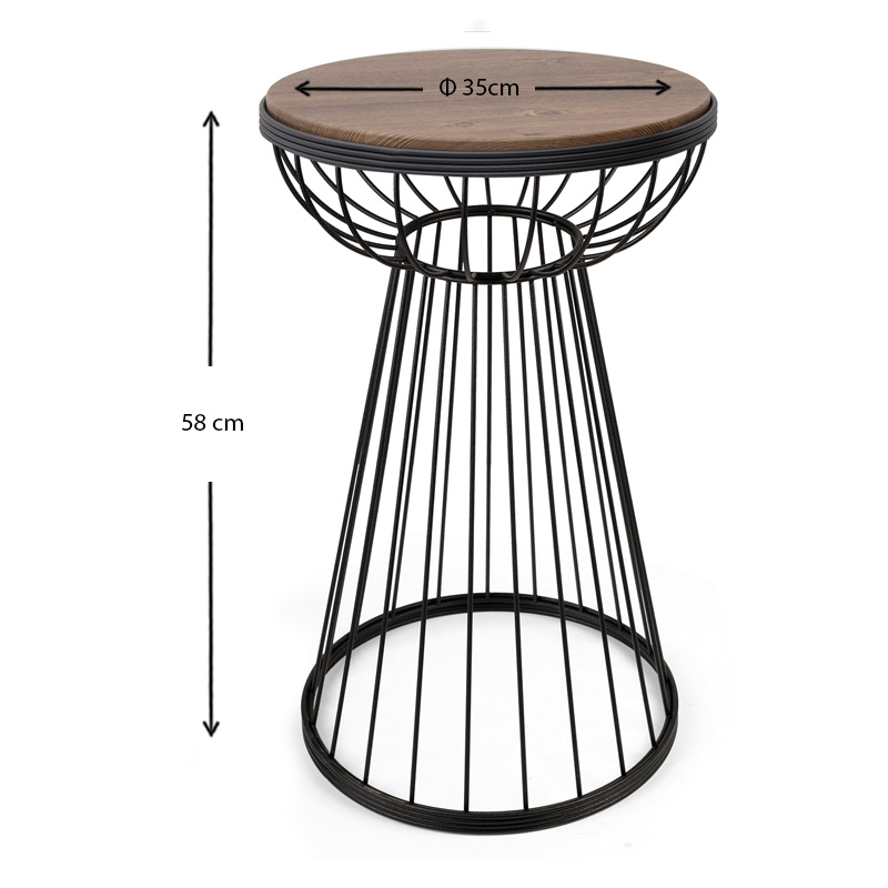 Βοηθητικό τραπεζάκι Mantare Megapap μεταλλικό – Mdf χρώμα μαύρο – καρυδί 35x35x58εκ.