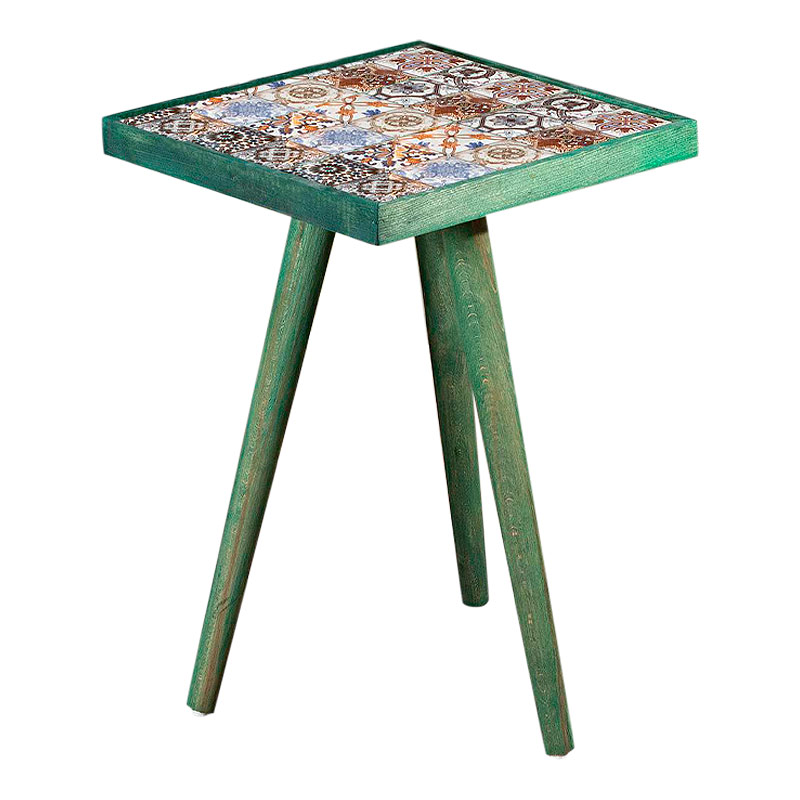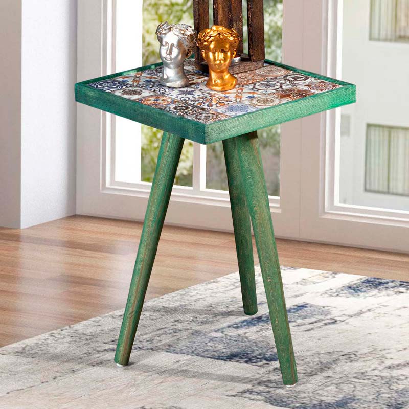 Βοηθητικό τραπεζάκι Mayra Megapap ξύλινο – κεραμικό χρώμα πράσινο εμποτισμού 32x32x45εκ.