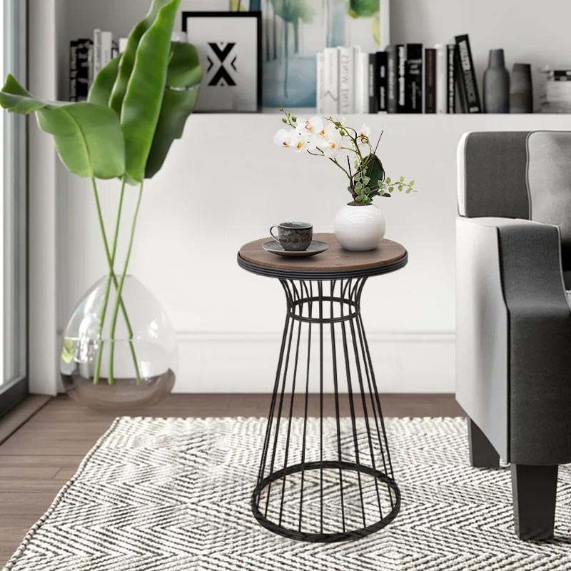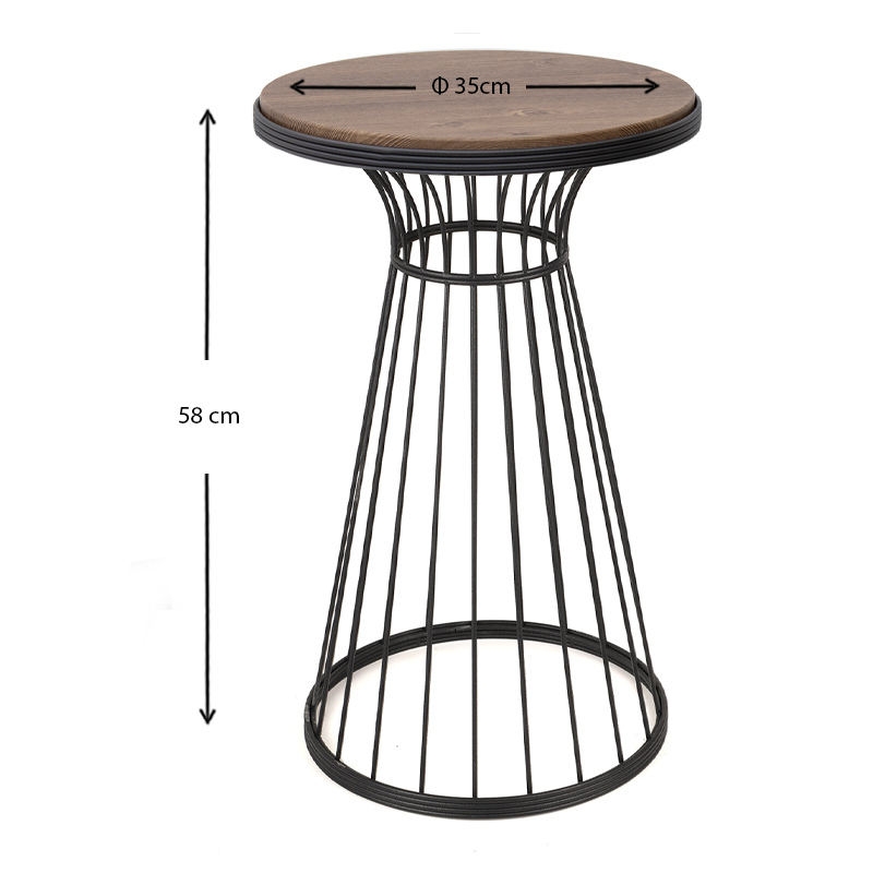 Βοηθητικό τραπεζάκι Tekosi Megapap μεταλλικό – Mdf χρώμα μαύρο – καρυδί 35x35x58εκ.