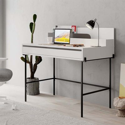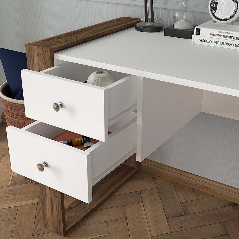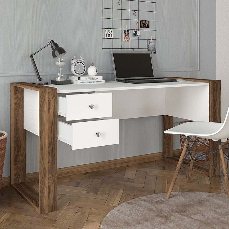 Γραφείο εργασίας Fernando Megapap από μελαμίνη χρώμα λευκό – καρυδί 158,4x60x72,2εκ.