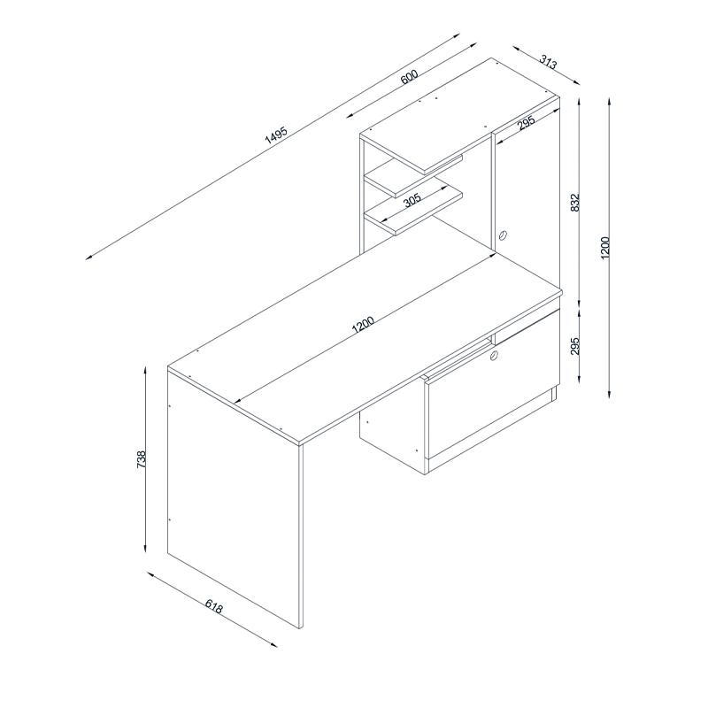 - Διαστάσεις γραφείου: Μήκος 120 x Βάθος 61,8 x Ύψος 73,8 εκ.