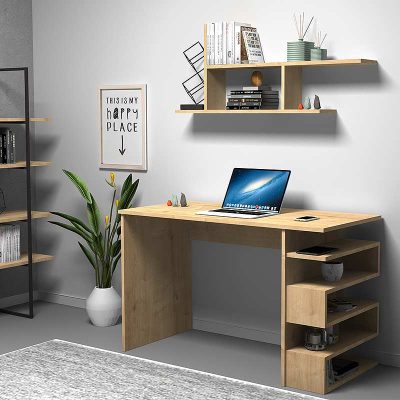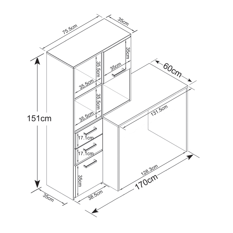 - Φέρει τρία ράφια βιβλιοθήκης, δυό ντουλάπια και δύο συρτάρια.
