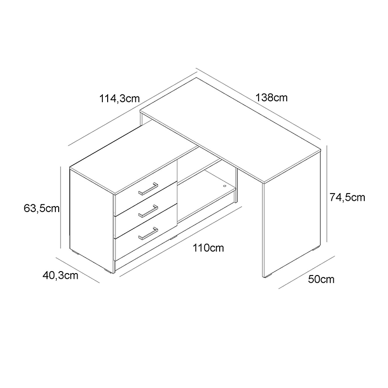 - Αναστρέψιμο γωνιακό γραφείο, η γωνία του μπορεί να τοποθετηθεί αριστερά ή δεξιά.