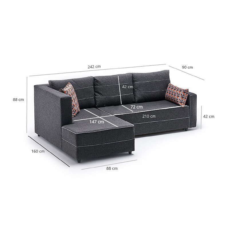 Γωνιακός καναπές – κρεβάτι Ece Megapap αριστερή γωνία υφασμάτινος με αποθηκευτικό χώρο χρώμα ανθρακί 242x160x88εκ.