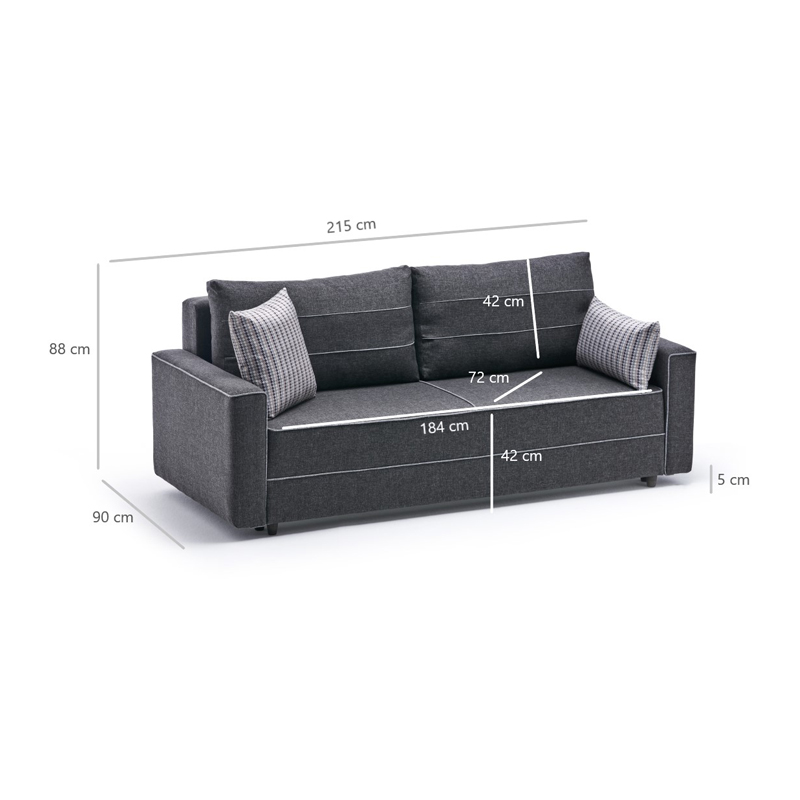 Καναπές – κρεβάτι Ece Megapap τριθέσιος υφασμάτινος χρώμα ανθρακί 215x90x88εκ.
