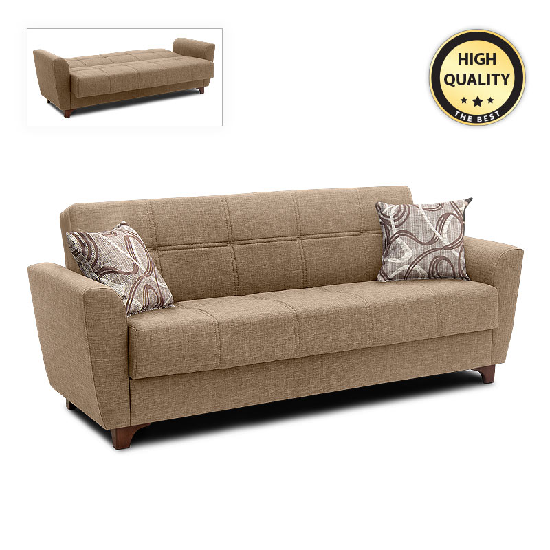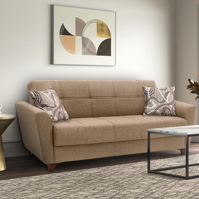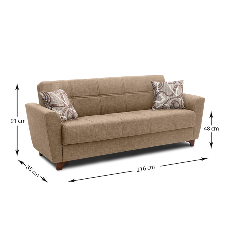 Καναπές – κρεβάτι Jason Megapap τριθέσιος υφασμάτινος με αποθηκευτικό χώρο σε μπεζ – ανοιχτό καφέ 216x85x91εκ.
