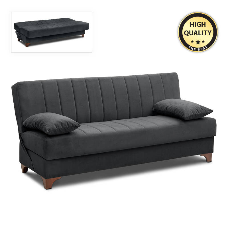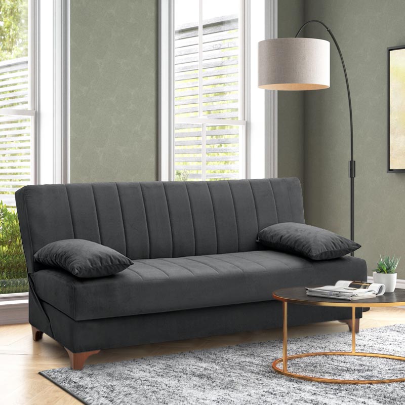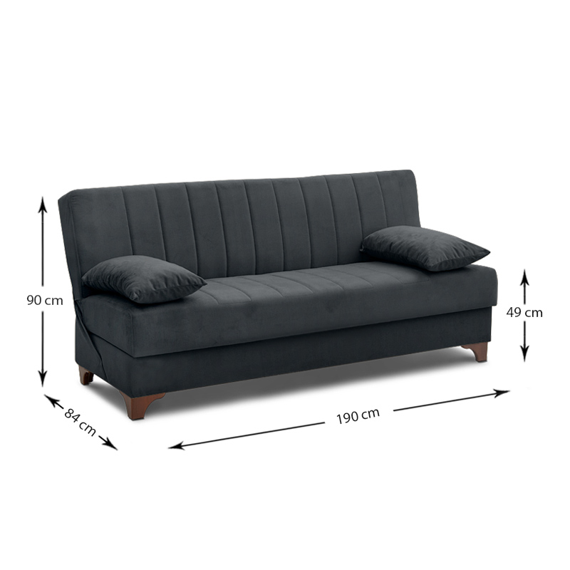 Καναπές – κρεβάτι Victor Megapap τριθέσιος βελούδινος με αποθηκευτικό χώρο σε χρώμα μαύρο 190x84x90εκ.