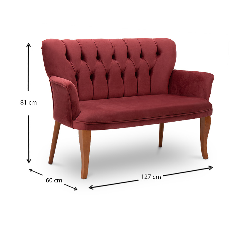 Καναπές Velma Megapap διθέσιος βελούδινος χρώμα βουργουνδί 127x60x81εκ.