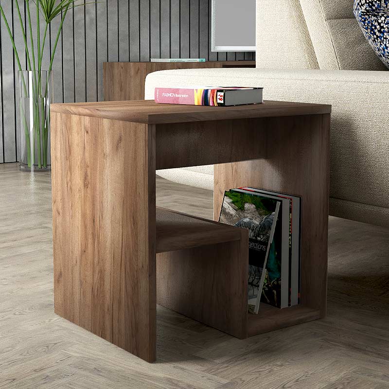 Κομοδίνο – Βοηθητικό τραπεζάκι μελαμίνης Alvize Megapap χρώμα ανοιχτό καρυδί 40x35x40εκ.