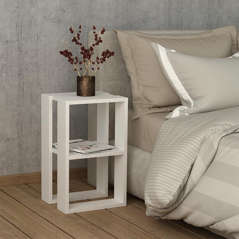 Κομοδίνο – τραπεζάκι βοηθητικό Lonie Megapap από μελαμίνη χρώμα λευκό 34x30x55εκ.