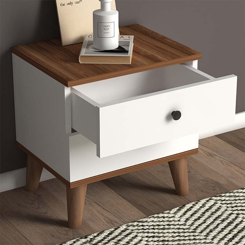 Κομοδίνο Luce Megapap από μελαμίνη χρώμα λευκό – καρυδί 45x35x47εκ.