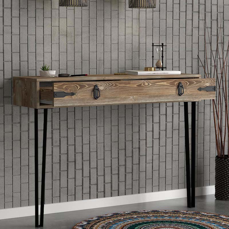 Κονσόλα επιτοίχια μελαμίνης Costa Megapap χρώμα καρυδί 120x35x90εκ.