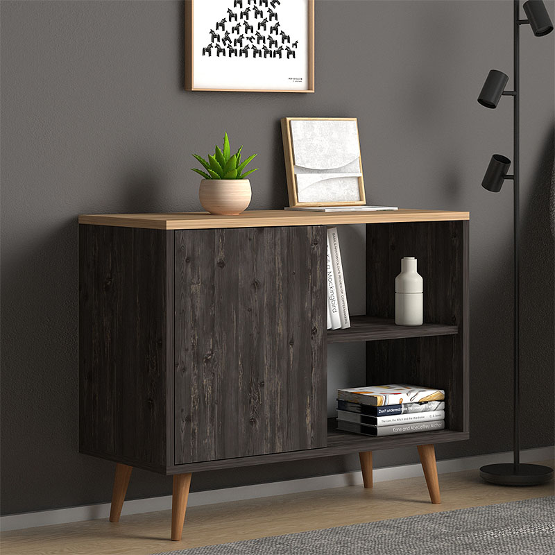 Κονσόλα – μπουφές μελαμίνης Luce Megapap χρώμα industrial grey – oak 80x35x66εκ.