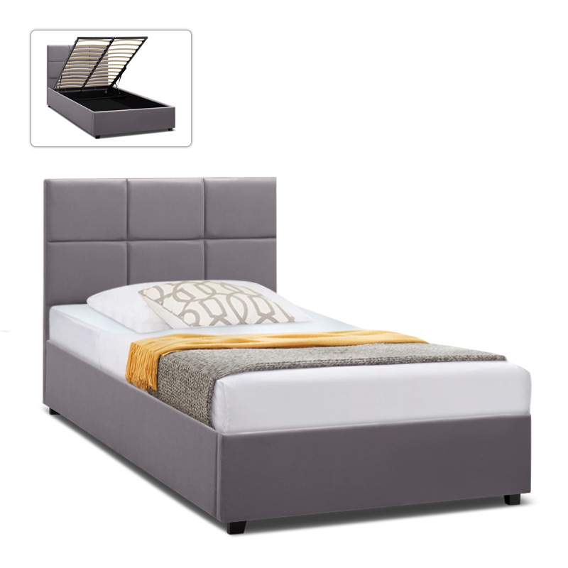 Κρεβάτι Kingston Megapap βελούδινο με αποθηκευτικό χώρο χρώμα γκρι 120×200εκ.