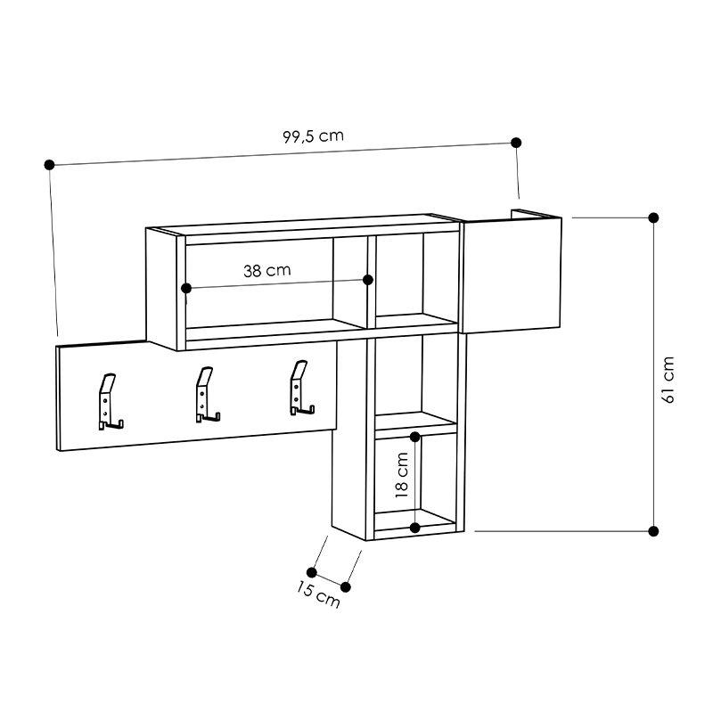 - Διαστάσεις: Μήκος 99,5 x Βάθος 15 x Ύψος 61 εκ.