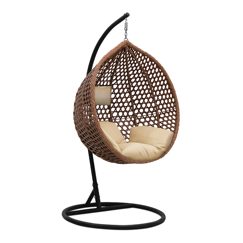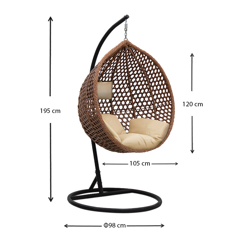 Κρεμαστή κούνια – φωλιά Alicia Megapap μεταλλική με πλέξη wicker χρώμα cappuccino 105x80x195εκ.