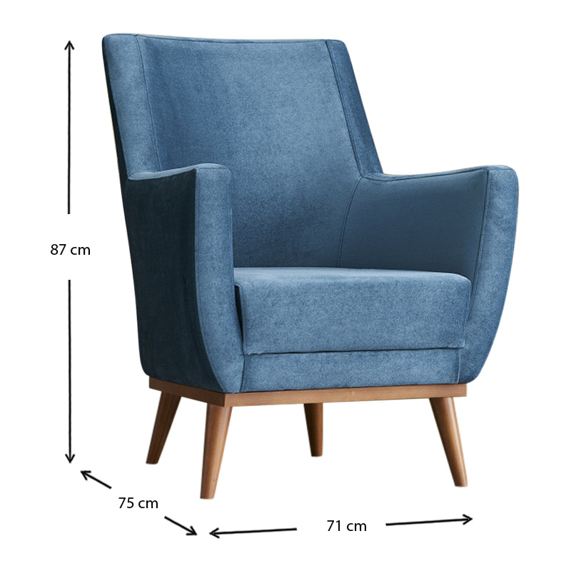 Μπερζέρα – πολυθρόνα Gonca Megapap βελούδινη χρώμα μπλε 71x75x87εκ.