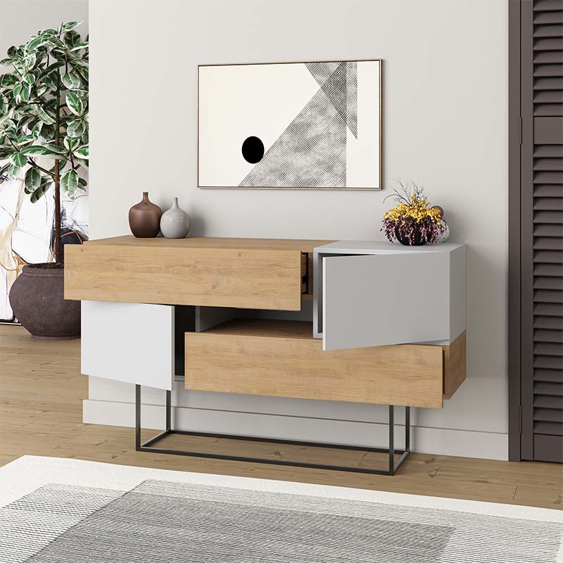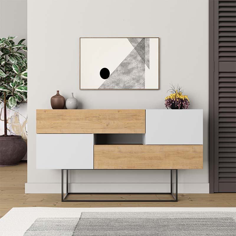 Μπουφές Eros Megapap από μελαμίνη φυσικό οξιάς – λευκό 145x40x82εκ.