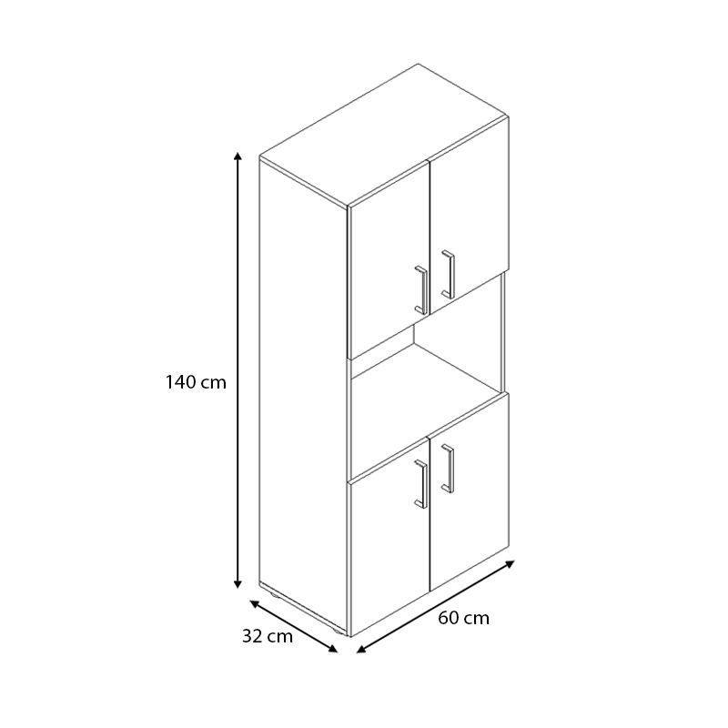 - Διαστάσεις: Μήκος 60 x Βάθος 32 x Ύψος 140 εκ.