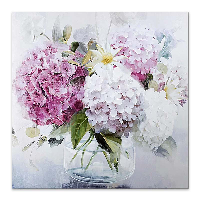 Πίνακας σε καμβά “Hydrangeas in vase” Megapap ψηφιακής εκτύπωσης 50x50x3εκ.