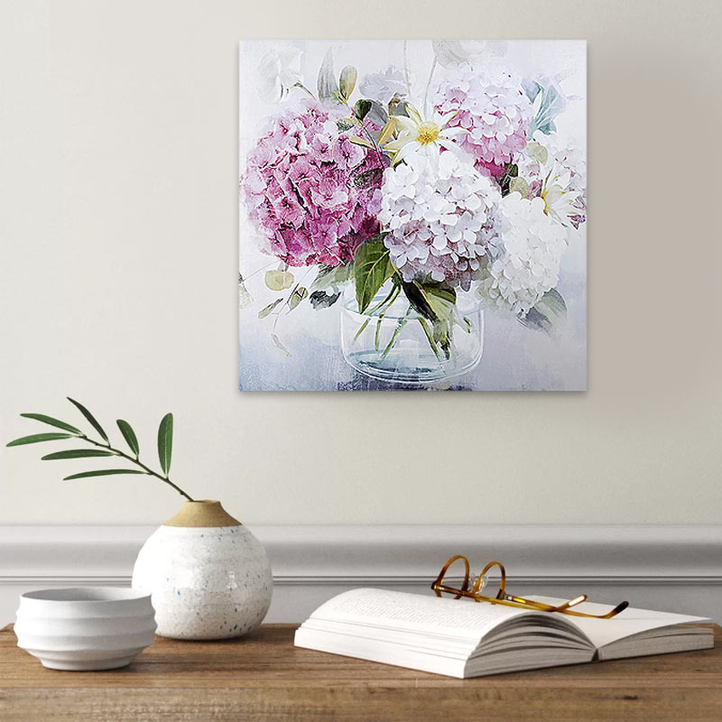 Ψάχνεις τον πίνακα που θα δημιουργήσει ροή θετικής ενέργειας στο περιβάλλον σου και θα συνδεθεί διακοσμητικά με τον υπόλοιπο οικιακό ή επαγγελματικό σου χώρο; Αναζητάς τον πίνακα, μοντέρνο ή κλασσικό, που θα σου χαρίσει στιγμές γαλήνης, χαράς, οικογενειακής ευτυχίας και θα ολοκληρώσει το συνολικό ύφος του γραφείου, της οικίας, του lobby, του καφέ, του εστιατορίου σου; Ο πίνακας “Hydrangeas in vase” είναι εδώ και σε περιμένει!