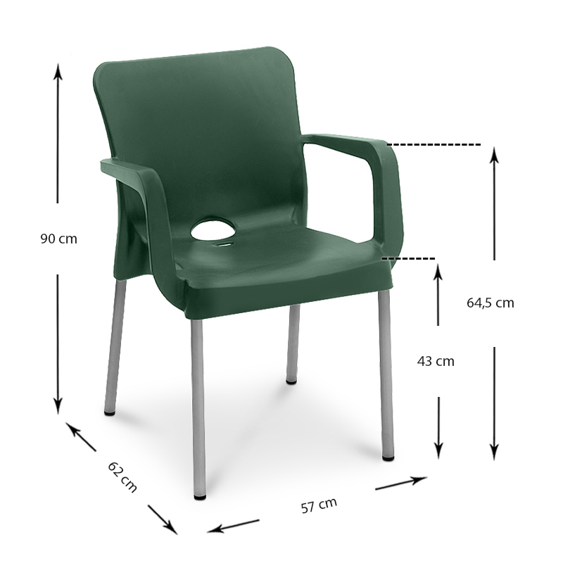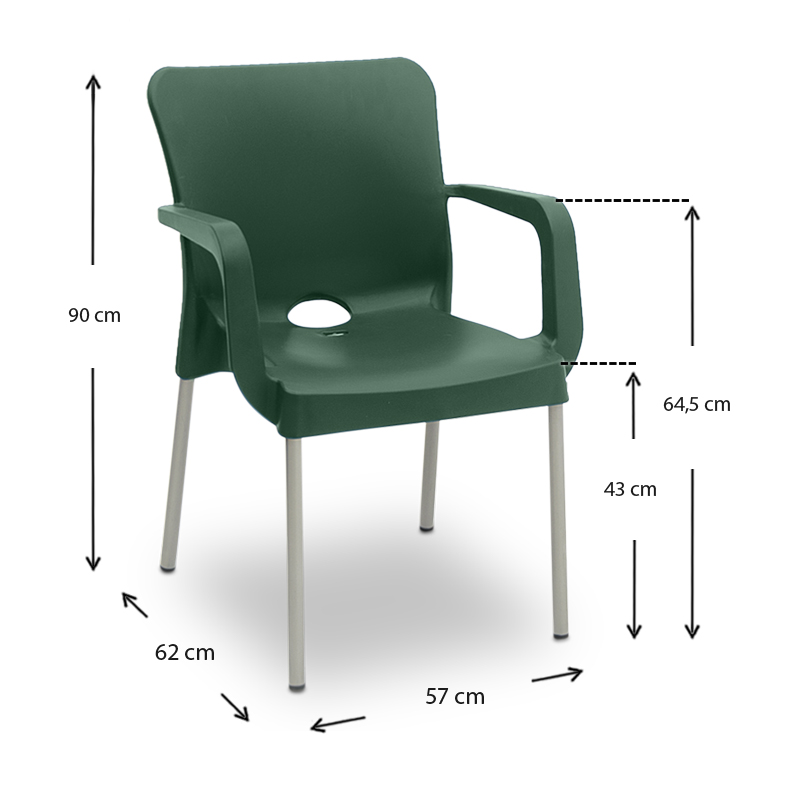 - Με κάθισμα και πλάτη από πολυπροπυλένιο υψηλών αντοχών στη φθορά και στο χρόνο.
