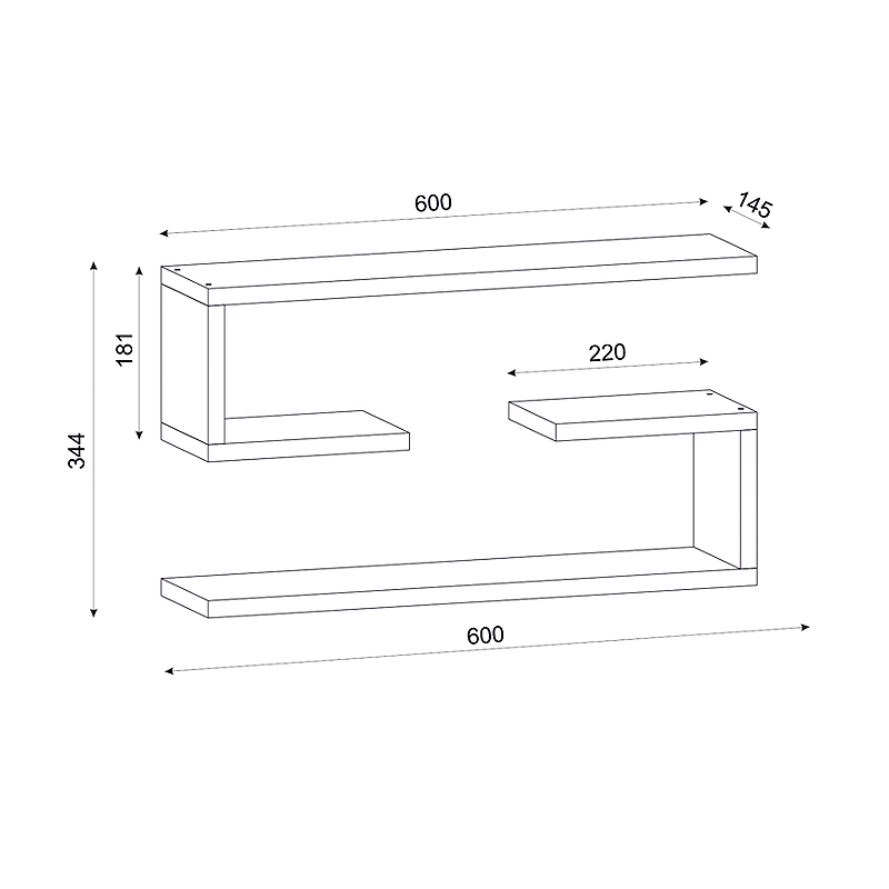 • Διαστάσεις κάθε τεμαχίου: Μήκος 60 x Βάθος 14,5 x Ύψος 18 εκ.