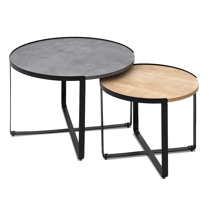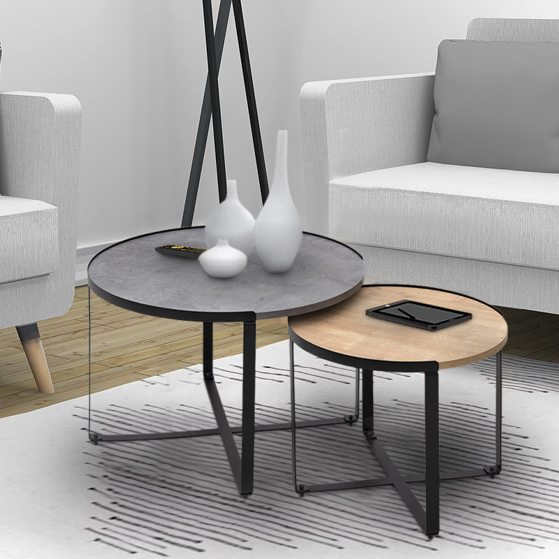 Σετ τραπεζάκια σαλονιού Davis Megapap 2τμχ. μεταλλικά – μελαμίνης γκρι σκυροδέματος/sonoma 70x69x46εκ.
