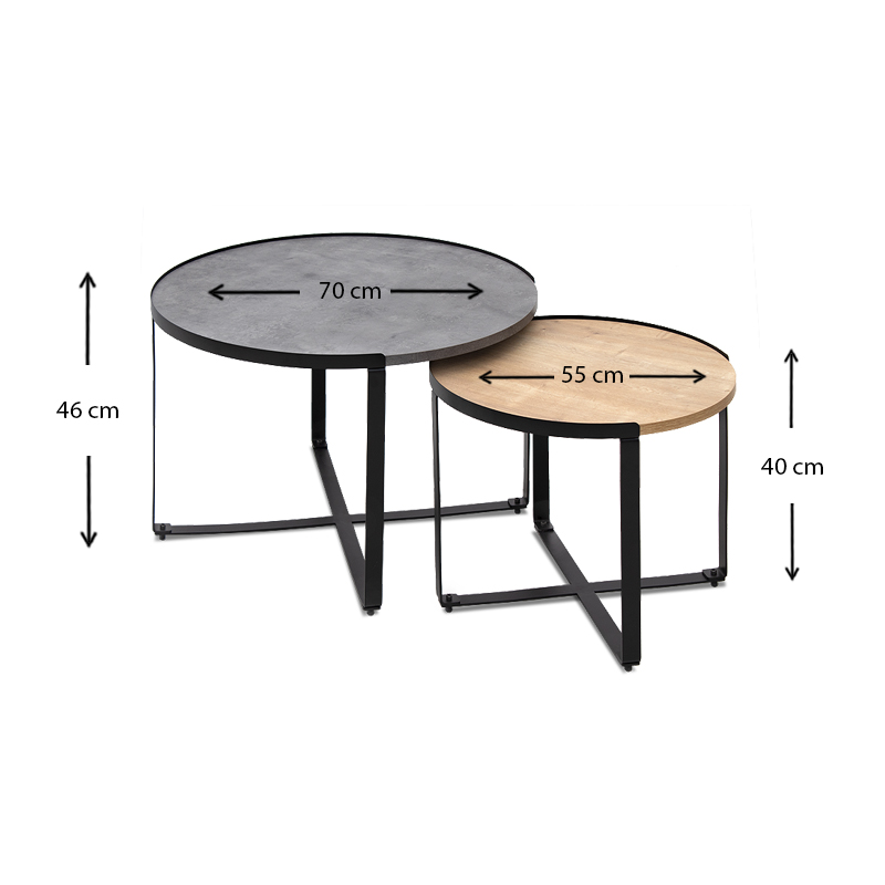 - Το σετ περιλαμβάνει δύο τραπεζάκια: το μεγάλο είναι ανθρακί, ενώ το μικρό sonoma.