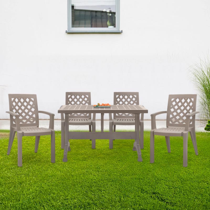 Σετ τραπεζαρία κήπου Callan Megapap 5τμχ πολυπροπυλενίου τραπέζι 120×70 – πολυθρόνα χρώμα cappuccino