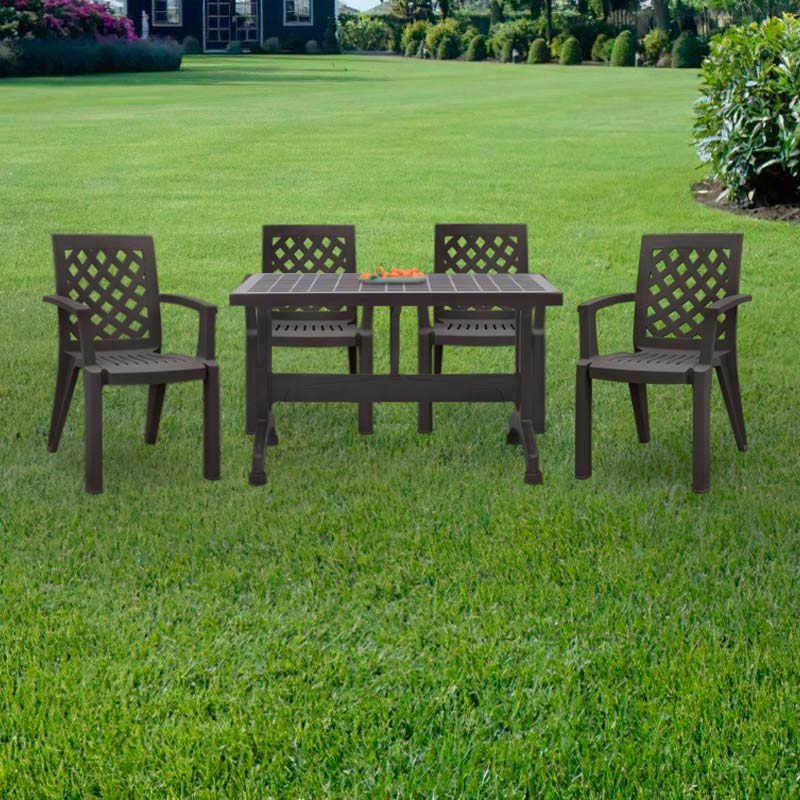 Σετ τραπεζαρία κήπου Callan Megapap 5τμχ πολυπροπυλενίου τραπέζι 120×70 – πολυθρόνα χρώμα καφέ
