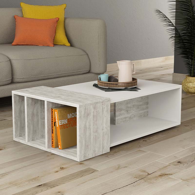 Τραπεζάκι σαλονιού Anita Megapap μελαμίνης χρώμα λευκό – λευκό αντικέ 102×56,5×32εκ.