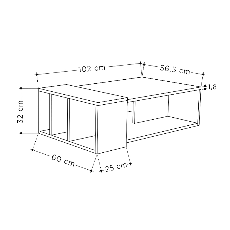 - Διαστάσεις: Μήκος 102 x Βάθος 56,5 x Ύψος 32 εκ.