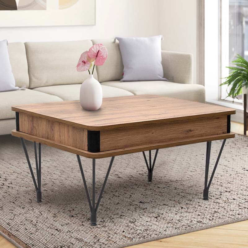 Τραπεζάκι σαλονιού Lugano Megapap Mdf – μεταλλικό χρώμα ακακίας 90x60x45εκ.