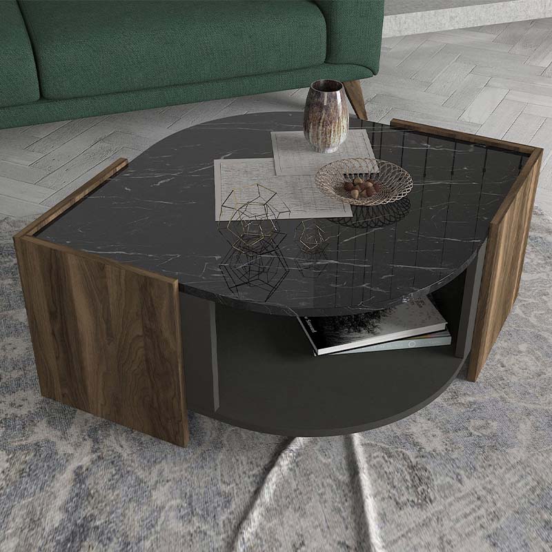 Τραπεζάκι σαλονιού Marbel Megapap από μελαμίνη χρώμα καρυδί – μαύρο εφέ μαρμάρου 75x75x40εκ.