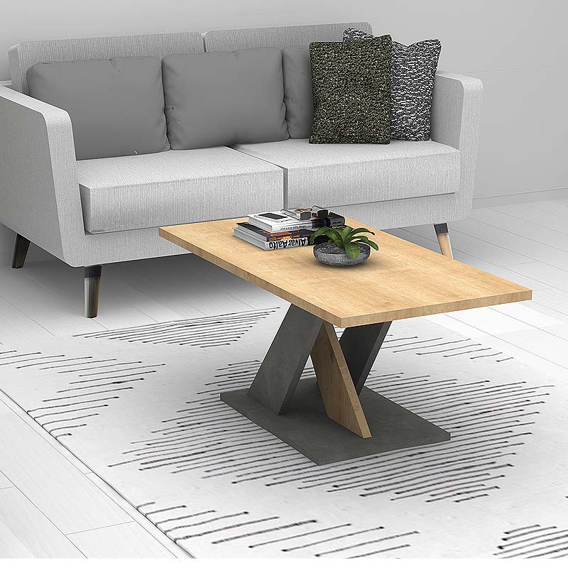 Τραπεζάκι σαλονιού Marcello Megapap μελαμίνης χρώμα sonoma – γκρι σκυροδέματος 110x55x48εκ.