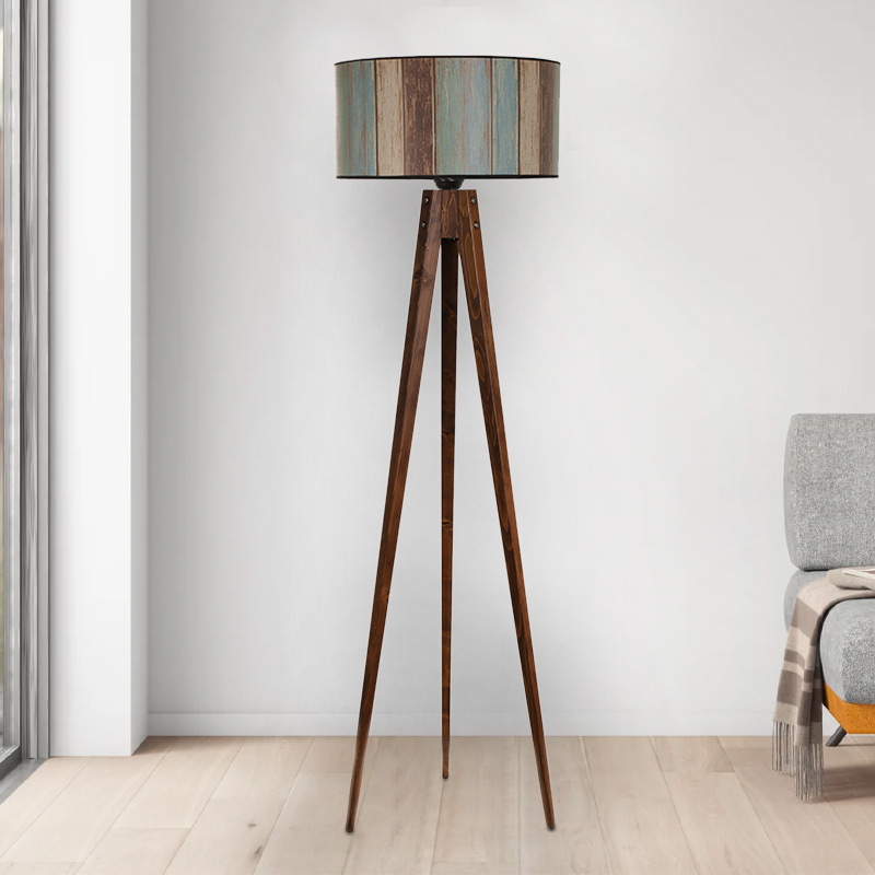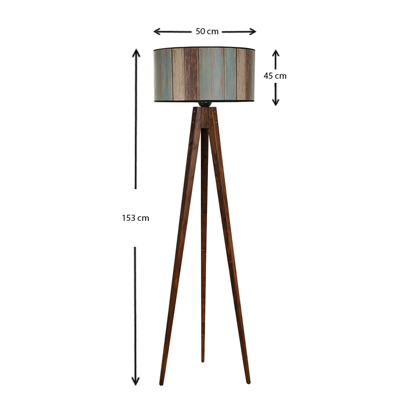 Φωτιστικό δαπέδου Nadine Megapap ξύλο/ύφασμα PVC χρώμα καρυδί – πολύχρωμο 50x45x153εκ.