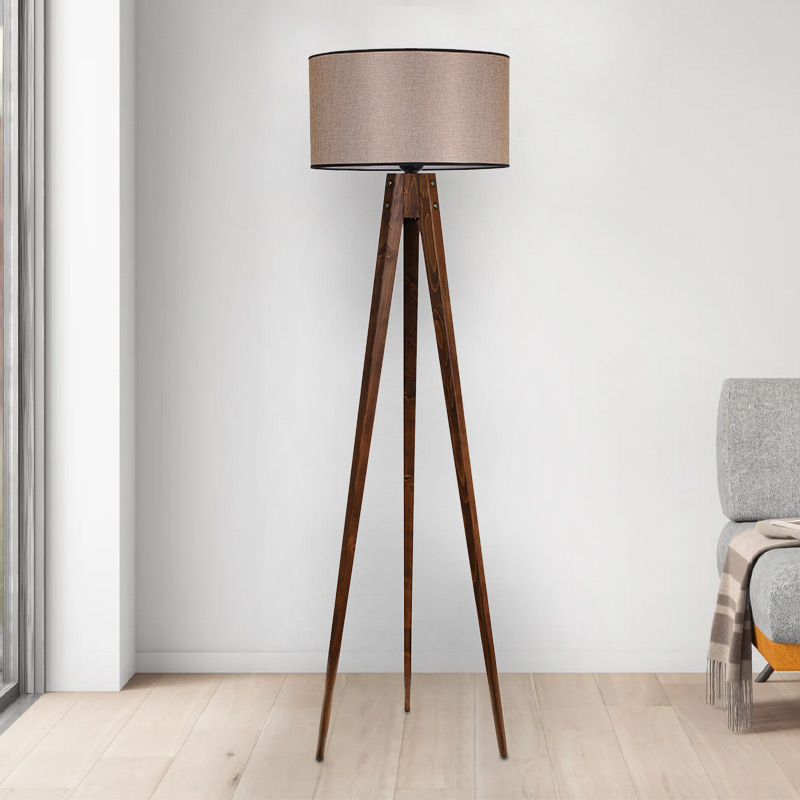 Φωτιστικό δαπέδου Nadine Megapap ξύλο/ύφασμα PVC χρώμα καρυδί – μόκα 50x45x153εκ.