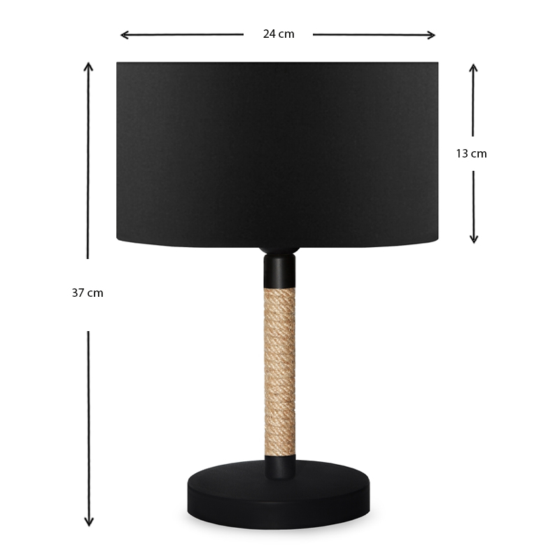 Φωτιστικό επιτραπέζιο Jean Megapap ύφασμα/σχοινί/χρώμιο χρώμα μαύρο/φυσικό 24x13x37εκ.