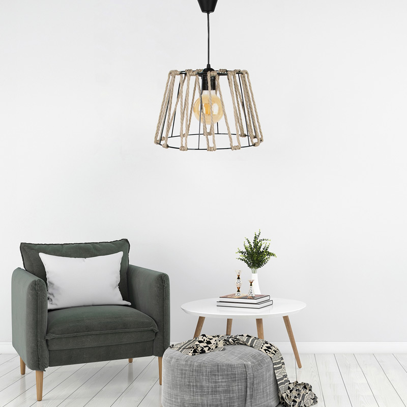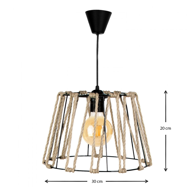 Φωτιστικό οροφής Andrew Megapap μέταλλο/σχοινί μονόφωτο χρώμα μαύρο φυσικό 30x30x20εκ.